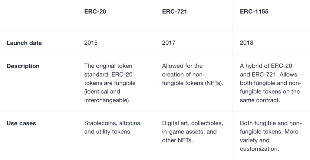 Estos tres estándares están entre los más utilizados dentro de Ethereum y, en cierta medida, ERC 1155 actúa como nexo entre los otros dos.